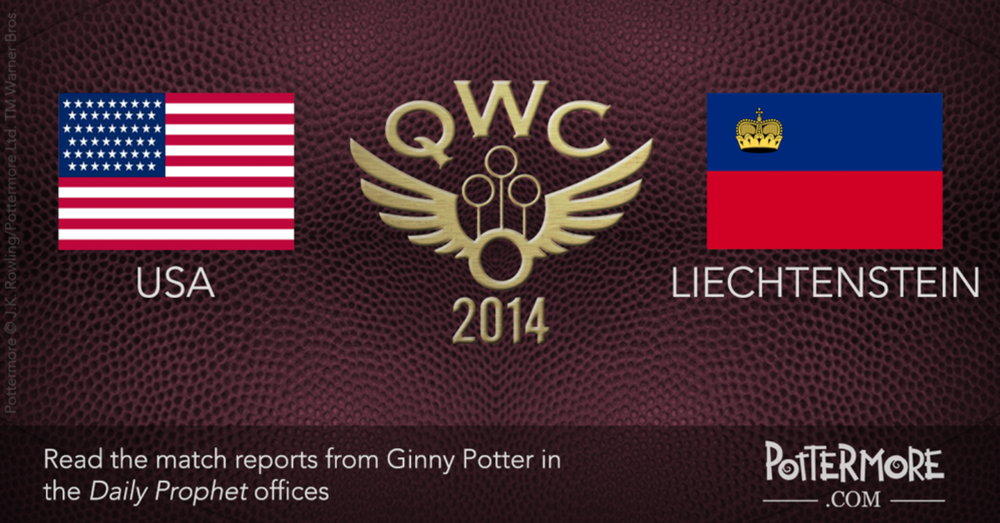 四分之一决赛的第三场在6月8日举行,最后美国队以450-290战胜列支敦士登。两支队伍都表现不俗,美国队追球手昆廷·科沃斯基因其娴熟的穿梭与翻滚技巧得到了观众的喝彩,队友奥特马尔·弗里克以16个球成为半场比赛进球最多的人。然而最亮眼的还是美国队找球手达利斯·斯迈克汉默,他在第148分钟抓到了金色飞贼,确保了美国队在半决赛拥有一席之地。抓到飞贼的过程惊险万分:他用惊人的冲刺躲过了两个游走球的夹击,并且冒着与列支敦士登追球手维利·温策尔相撞的风险在维利的左脚踝附近抓住了盘旋的金色飞贼。