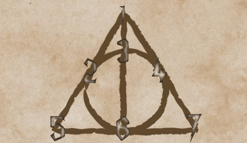 一条竖线、一个圆、外面的一个三角形——死亡圣器的标志。线与线的焦点上漂浮着微微扭动的数字1至7。阿不思微微一笑,心下有了决定。