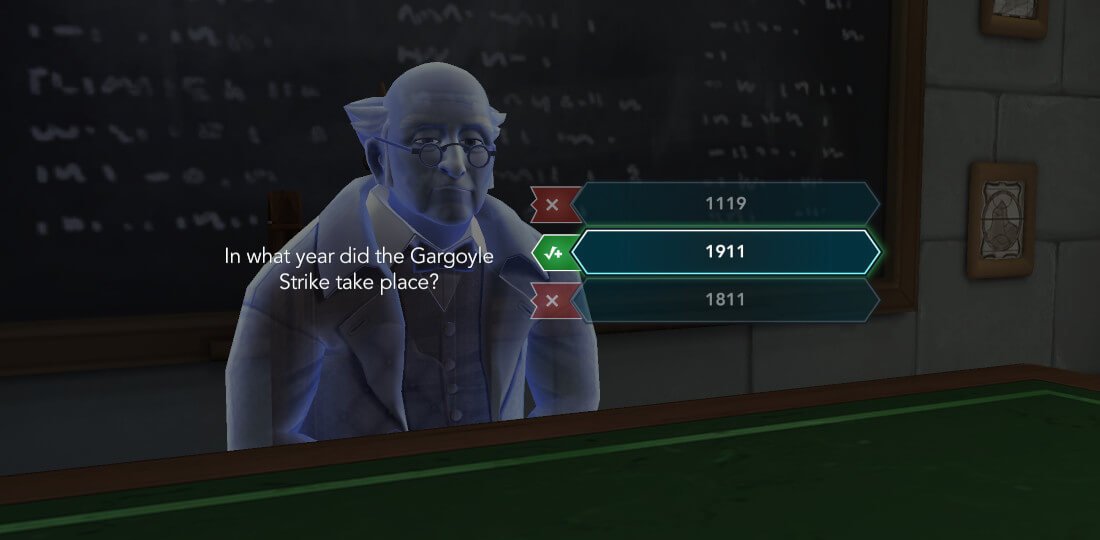 滴水嘴石兽罢工也在Hogwarts Mystery的魔法史课中出现。