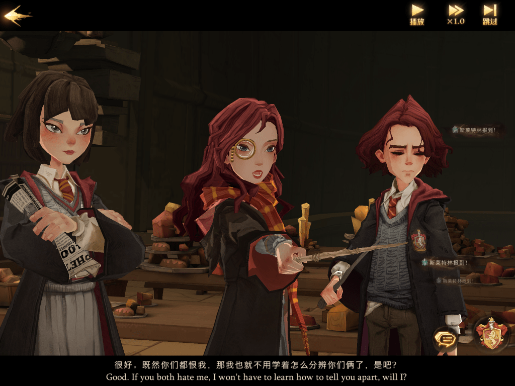 我们不谈世界观(一年级新生对各种魔法了如指掌运用自如,至少能单刷n只XXXX的毒角兽,天赋吊锤三巨头)、不谈价值观(校园内黑魔法遍地走,给你机会对麦格教授施钻心咒)、不谈主线剧情(我还是那句话,但凡网易买个走心的同人文都不至于这样,部分桥段说是芭比都低估了芭比的受众年龄)——考据都做不好,错了还不改。再退一步,翻译都做不好——哦,这次终于把翻译bug修了,可喜可贺。