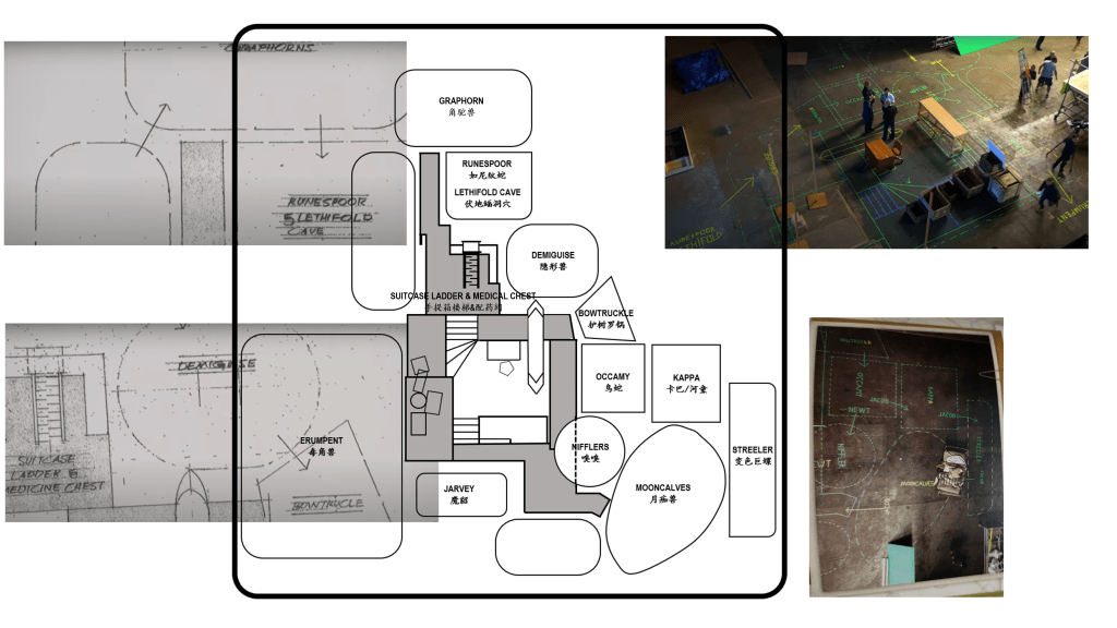 接下来的内容,就需要我们从电影中纽特和雅各布的动线来推断了(截图来自于B站版本)。我先把推断之后的布局图放在这里,大家可以对照看: