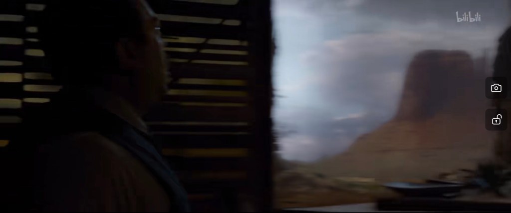 然后推开门之后侧边是昏黄和浅绿色,正对着雷鸟(所以可以确定雷鸟占据左边的空位,处于动线上小屋和角驼兽之间):