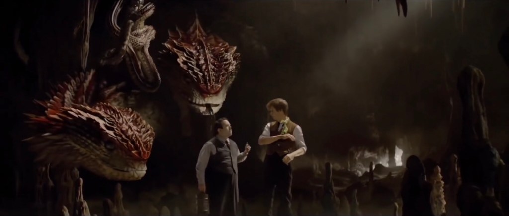 根据上面的推测,确实两个场地边缘互相垂直。接下来(删减片段)纽特和雅各布到达了一些岩洞地形的地方,这里居住着如尼纹蛇(和被官方标注的伏地蝠):